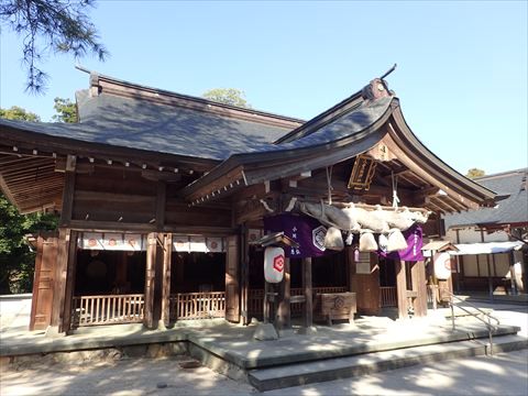 こちらが神社の拝殿。出雲大社とは違って、ここでは一般的な二礼二拍手一礼で参拝。