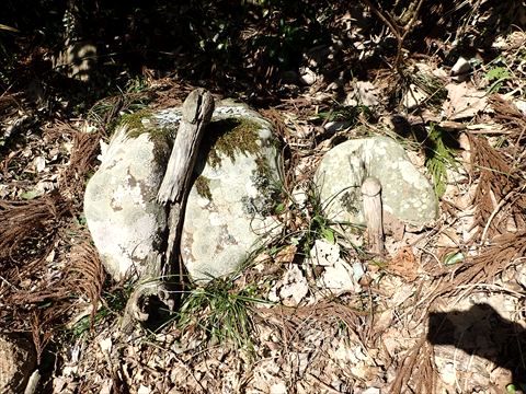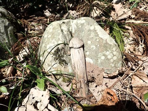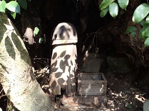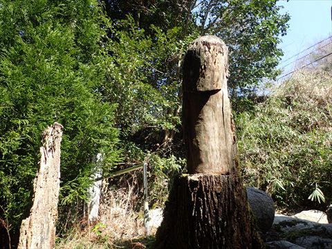 鳥居をくぐる前に、こちらを見てみました。実はこれ、かつては男根型の木像だったそうなんですが、管理する人がいないために風雨の影響で折れてしまい、今はこんな姿になってしまったそうです。