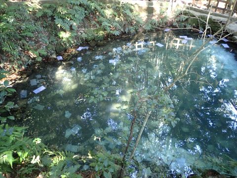 参拝客が次々とやってきては占い用紙を浮かべ、ずっと眺め続けている風景は興味深いものです。私は特に縁を確認したい相手もいないので、占いはやっていません。