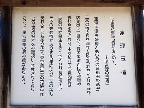 境内の外に出ると、3ヶ所目の夫婦椿。別名の「連理玉椿」については、下に載せている案内書きに説明がありました。