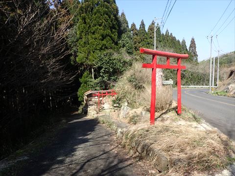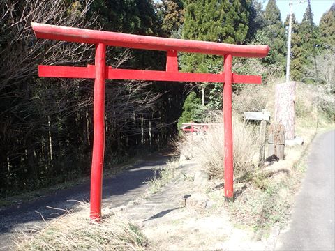 この社は境内社の「山神神社」になります。社の前にあるのは、古式の鳥居。