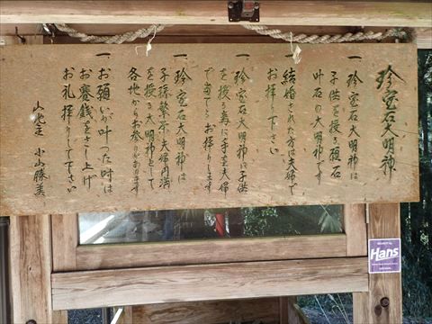 小さな祠には「珍宝石大明神」と書かれていました。