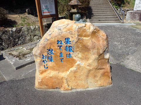 「果報はねてまて、涅槃おやじ」という岩。