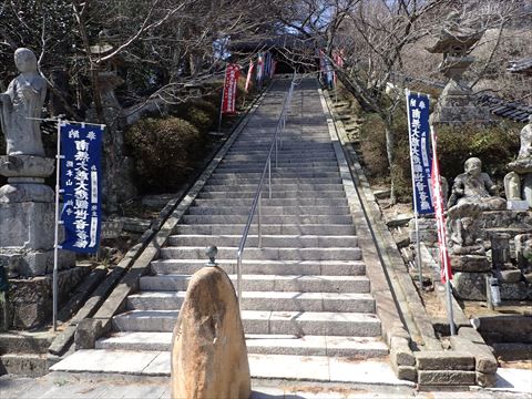 では、この石段を上がって寺院へ。