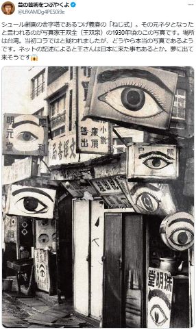 つげ義春の「ねじ式」に登場する「ちくしょう、目医者ばかりではないか」という有名なシーン、実は現実に存在していた風景を参考にした可能性が高いみたいです。