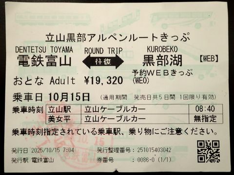 最初はこのことを知らず、当日でも大丈夫だろうと思っていたらインバウンド需要により購入は困難になっているとのこと。このことを知ったのが出発の1週間ほど前で、慌てて確認したら平日だったためかぎりぎりで空きがありました。これから立山黒部アルペンルートへ行くことを考えている人は、必ず早めに行動するようにして下さい。特に週末はすぐに空きがなくなるようです。