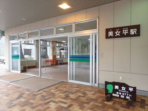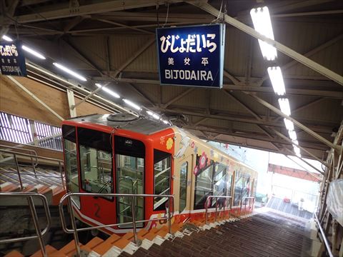満員だったため列車内の写真は撮れず。急勾配を上って美女平駅に到着。