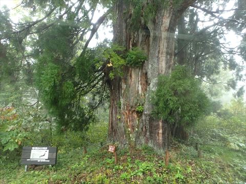 ここからは高原バスで室堂へ。ブナや杉の巨木が立ち並んでいて、いい雰囲気。途中の「仙洞スギ」ではバスがいったん停車して近くで見せてくれます。