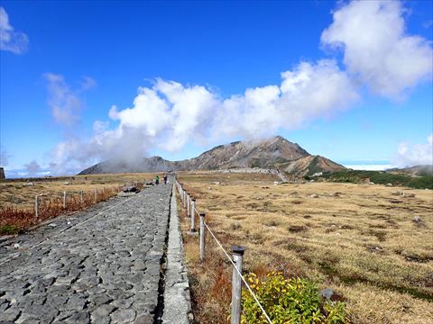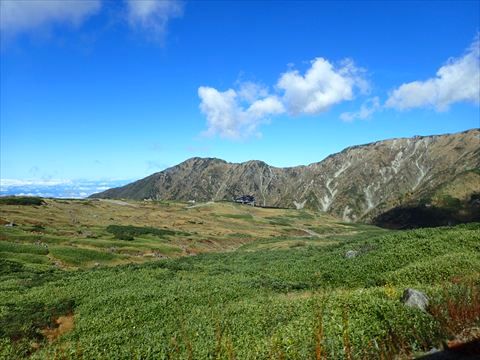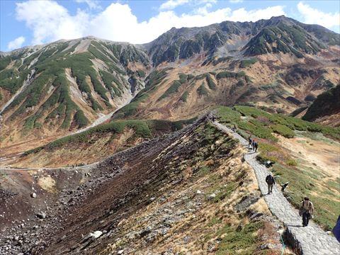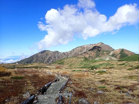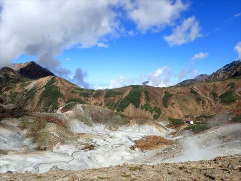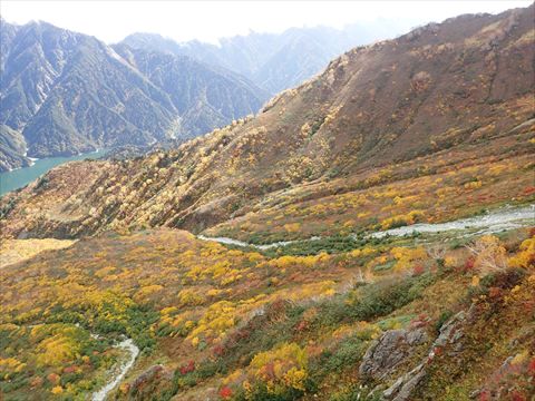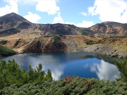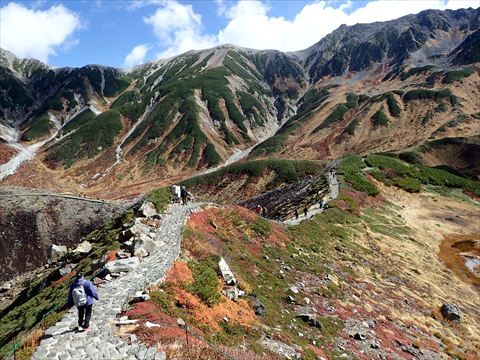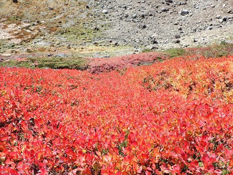 この付近では、赤い植物が斜面を覆っていました。これは「チングルマ」という高山植物で、秋になるとこんな風に赤くなるそうです。おそらく、初めて見ました。