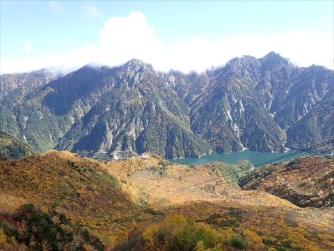 ここから黒部平まではロープウェイ。遠くに見えるのが黒部湖。