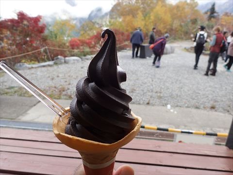 黒部平では、先ほどブラックドッグを買った軽食コーナーで名物のブラックソフトを注文。ビターで濃厚な感じが美味しかったんですが、さすがにちょっと寒い。