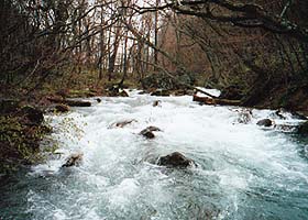 下の写真などは、奥入瀬渓流の写真などでよく見るような風景という感じ。