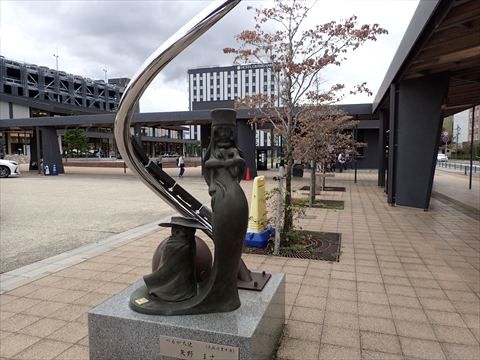 新幹線側ではなく在来線側の駅周辺を歩いていると、星野鉄郎とメーテル像がありました。