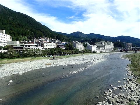 下呂駅を出発し、飛騨川を渡るときの風景。川沿いに見える下呂温泉郷にも、いつかワーケーションで滞在してみたいものです。