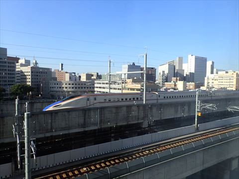 富山駅近くのアパホテルなので、窓からは北陸新幹線が見えます。