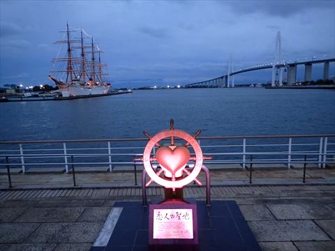 暗くなってくると、ライトアップされた海王丸と新湊大橋がきれいに見えてきます。
