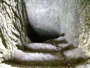 とりあえず縦穴の登り口に行き、上を見上げるとこんな感じ。登る人のために鎖が設置されている。鎖をつたわって登ろうと思ったが、途中で諦めた。