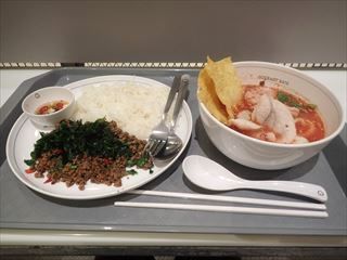 おなじみのサイアムパラゴンに入り、フードコートで夕食。選んだのはビーフバジルライス(135バーツ)とトムヤムヌードル(100バーツ)。味はもちろんうまい。