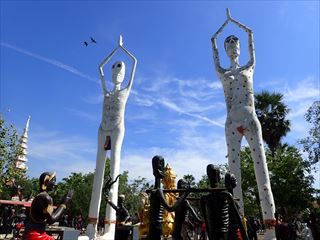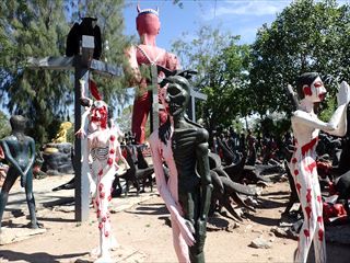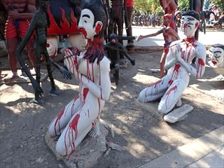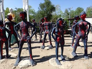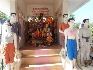 まずは亡者たちを見ながら歩いてみた。ワットムアンとは違って、いろんな亡者たちが等間隔で並んでいる感じ。