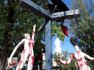 こちらもタイの地獄の定番と言えるトゲトゲの木。これは生前に浮気した人が登らされる責め苦。