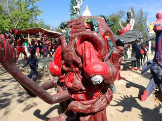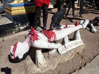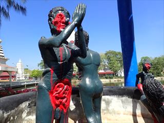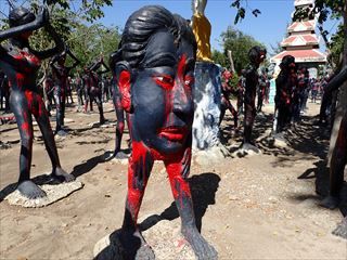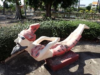 このワットパイロンウアの地獄風景だが、旅行後にX(旧Twitter)の投稿で「日本の某国会議員をモデルにした像がある」という話を見かけた。