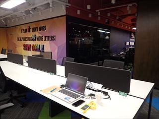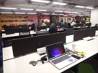 ただ、作業スペースはこんな感じ。他にもちゃんとしたデスクは並んでいたが、1日パスで使えるのはここだけ。