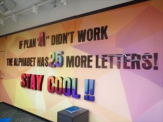 壁にはいろんな標語。「プランAがうまくいかなくても、アルファベットはあと25文字もあるんだから」というのが面白い。