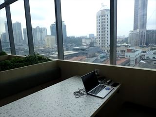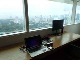 39階にあるだけあって、景色はきれい。クアラルンプールの町並みを見下ろしながら作業していると、自分がものすごいビジネスマンになったかのように錯覚しそう。実態はただのフリーランスみたいな境遇なんだが。