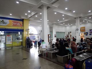 駅に入り、まずはクアラルンプールまでの列車の時刻を調べてみた。最初は窓口で聞くつもりだったが、ガラスに時刻表が貼ってあり、すぐに調べられたのは助かった。