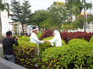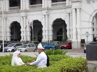 このときは本当の新婚さんによる記念撮影だろうと思っていたが、後日マラッカに滞在しているときにマラッカ海峡モスクでも同じような撮影を見かけ、そちらはモデルさんたちによるイメージ映像の撮影みたいだった。