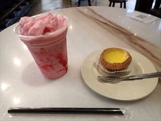 エッグタルトとストロベリースムージーで14.8リンギ。