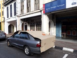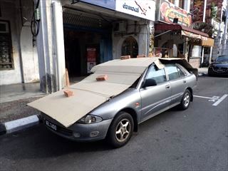 イポー滞在2日目は、近郊の寺院(霊仙岩、南天洞、三宝洞、打捫心意佛院)を回ってきた。それらの風景は別のページに載せることにして、こちらはちょっと面白いと思った車のカバー方法。